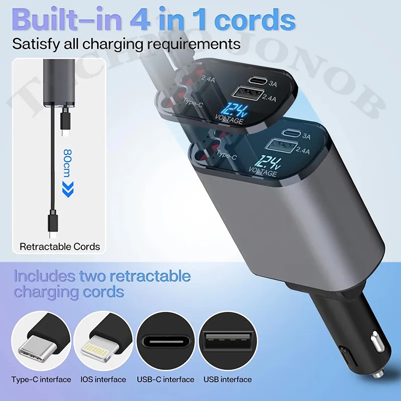 شارژر فندکی خودرو فست شارژ 120 وات |Car Charger 4in1